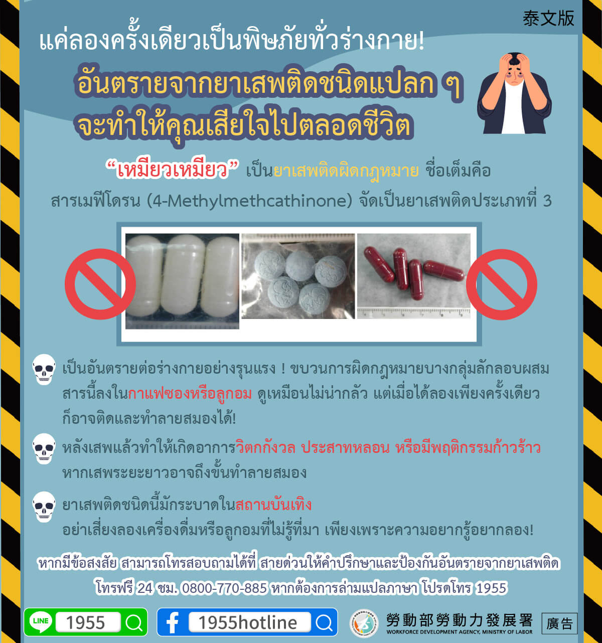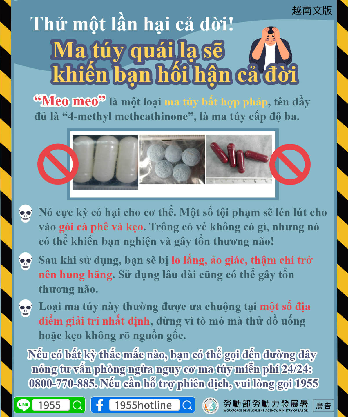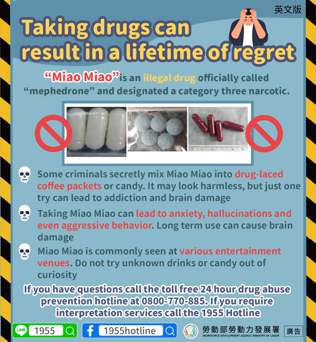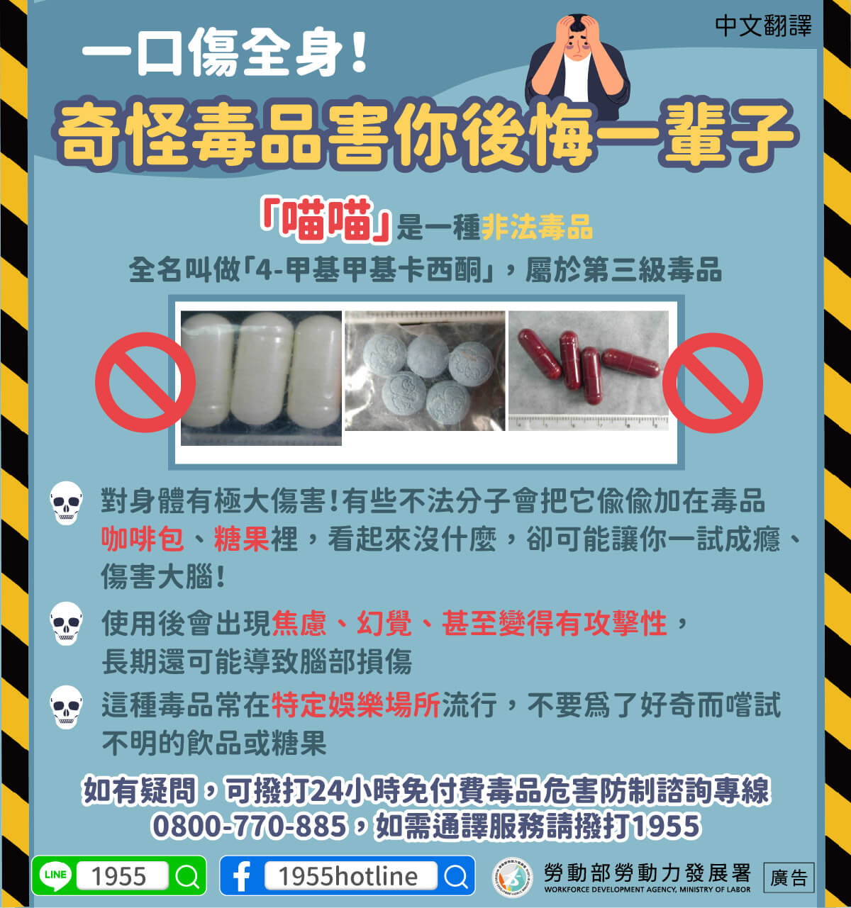 如有疑問,可撥打24小時免付費毒品危害防制諮詢專線0800-770-885,如需通譯服務請撥打1955