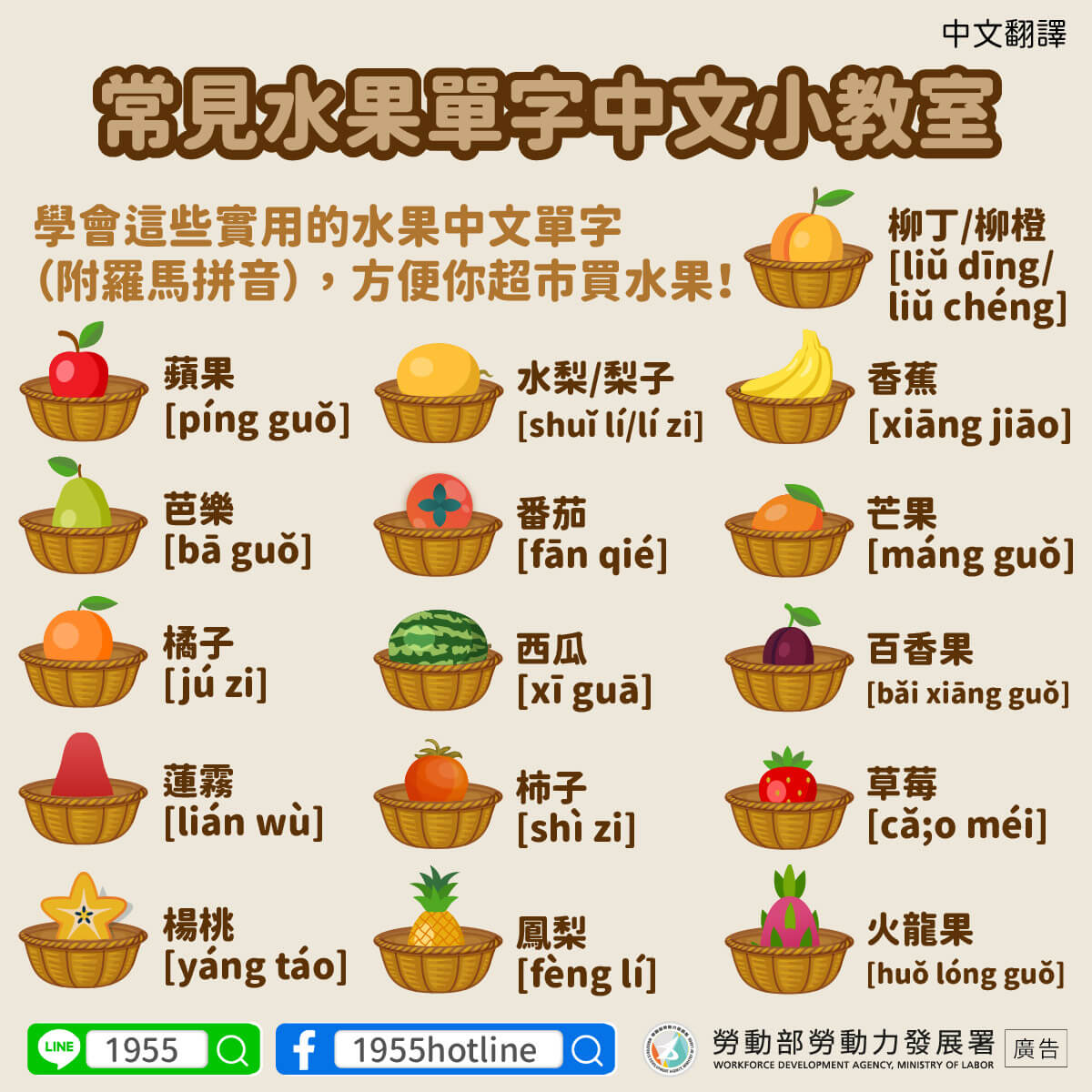 中文小教室-常見水果單字