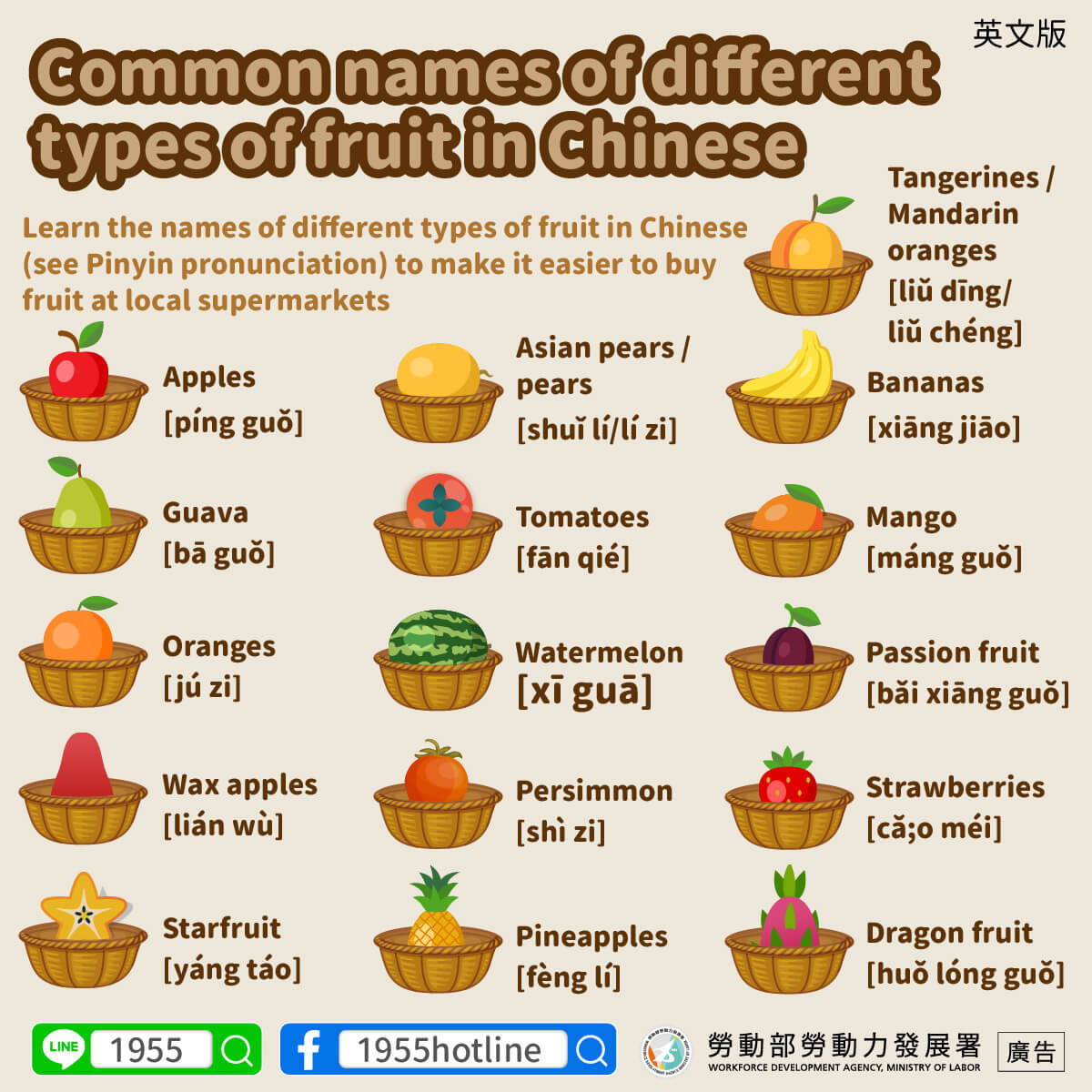 學會這些實用的水果中文單字(附羅馬拼音),方便你超市買水果!