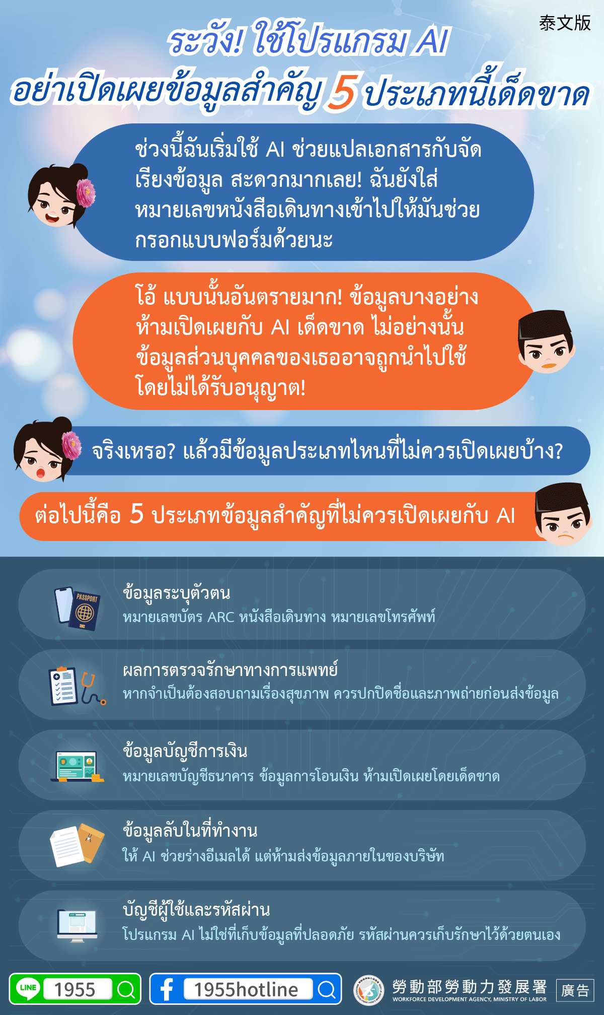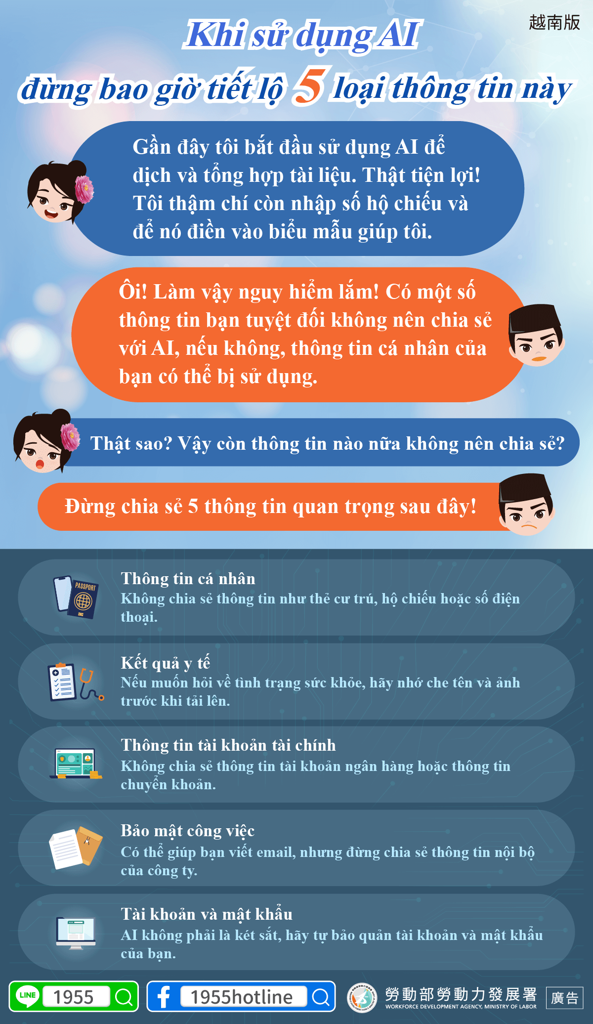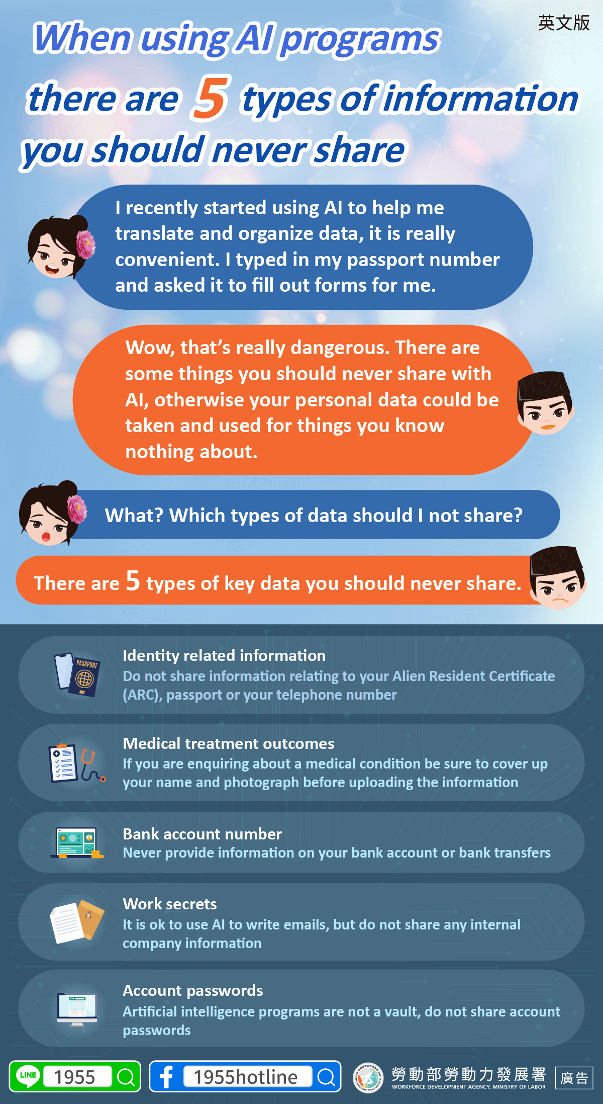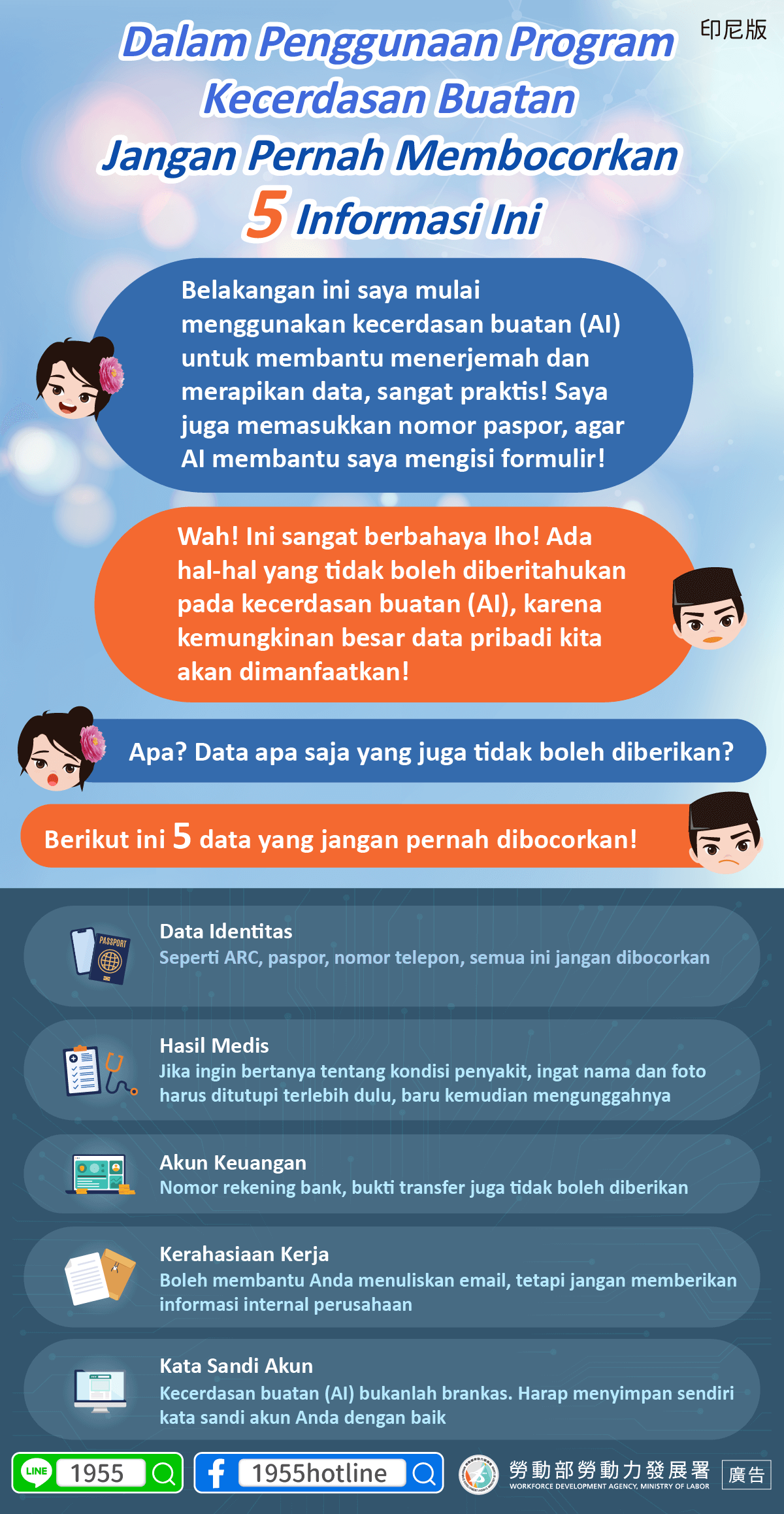B:哇!這樣很危險耶!有些東西絕對不能跟AI說,不然個資很可能被拿去利用!