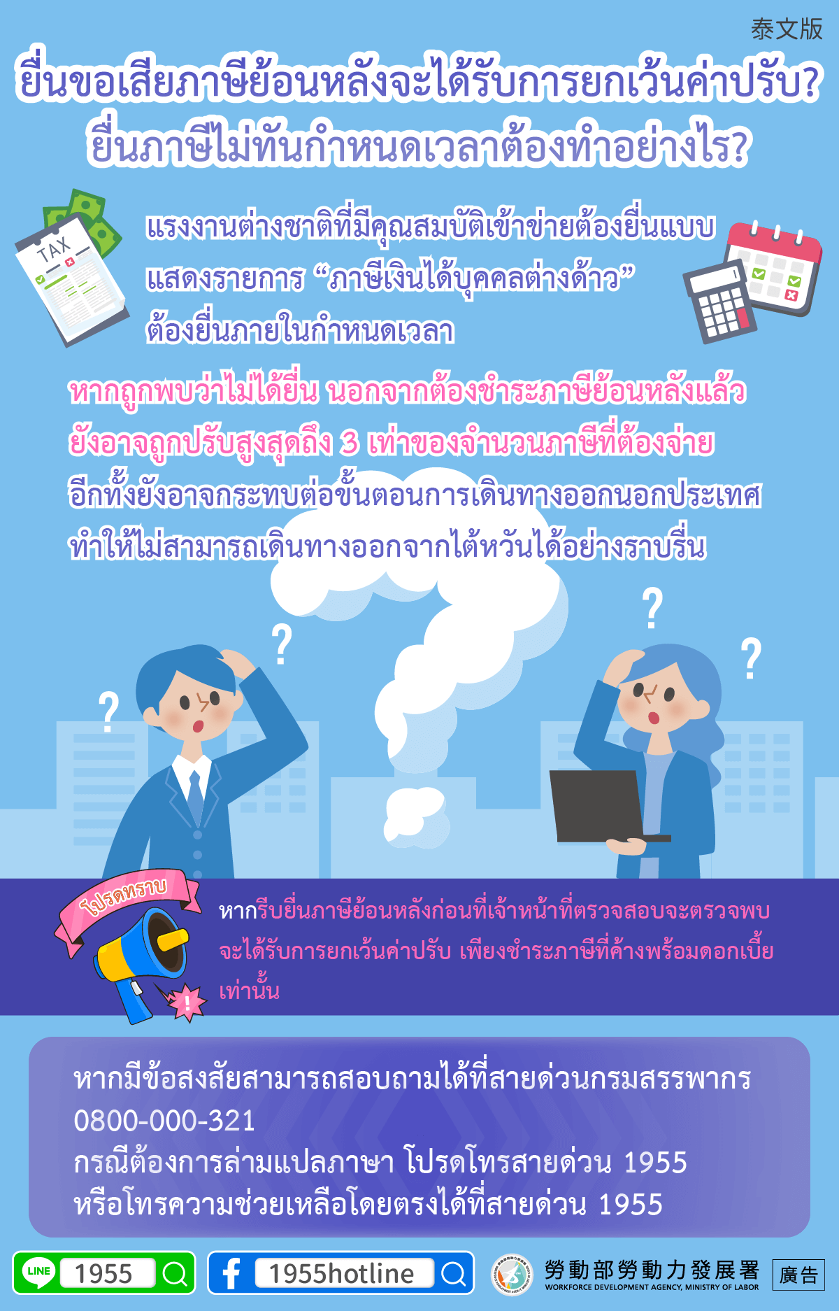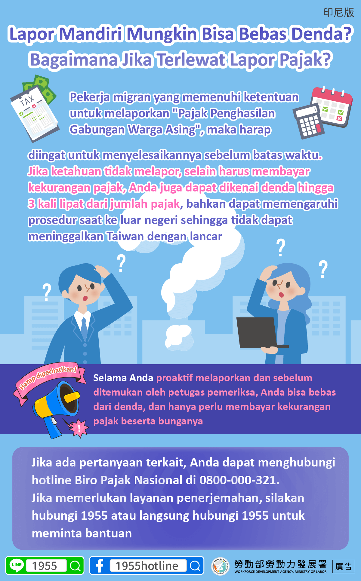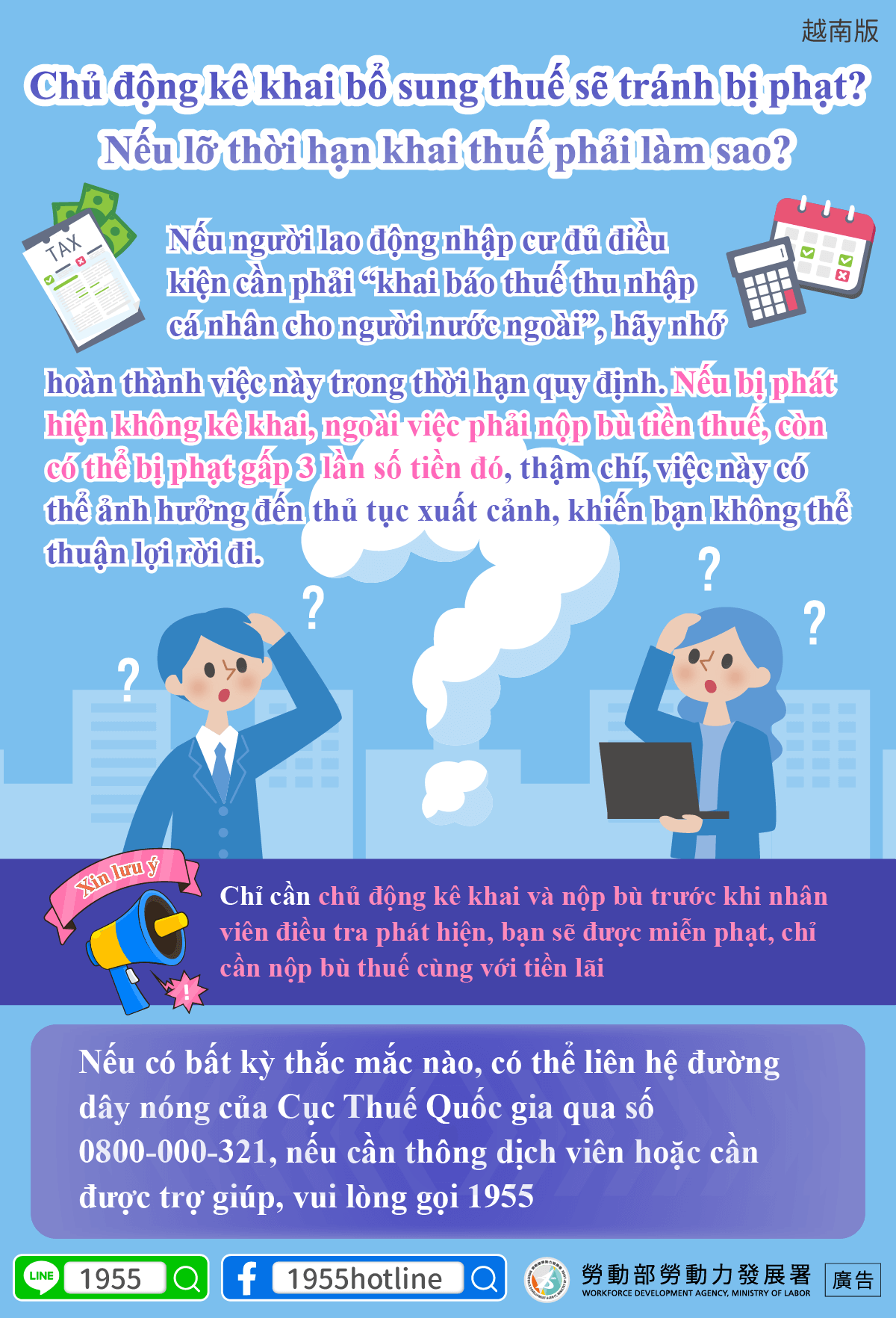 如有相關疑問,可洽詢國稅局專線0800-000-321,如需通譯服務請撥打1955;或直接撥打1955尋求協助