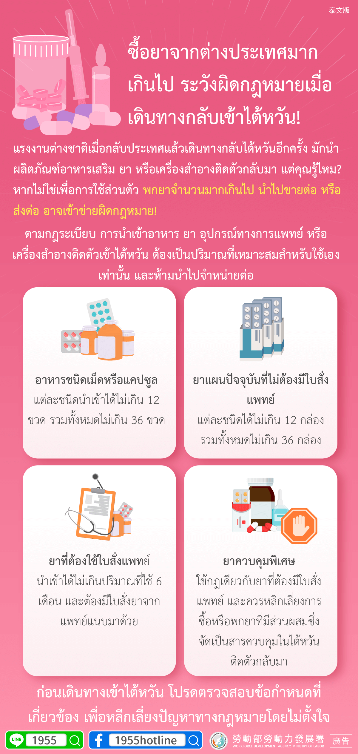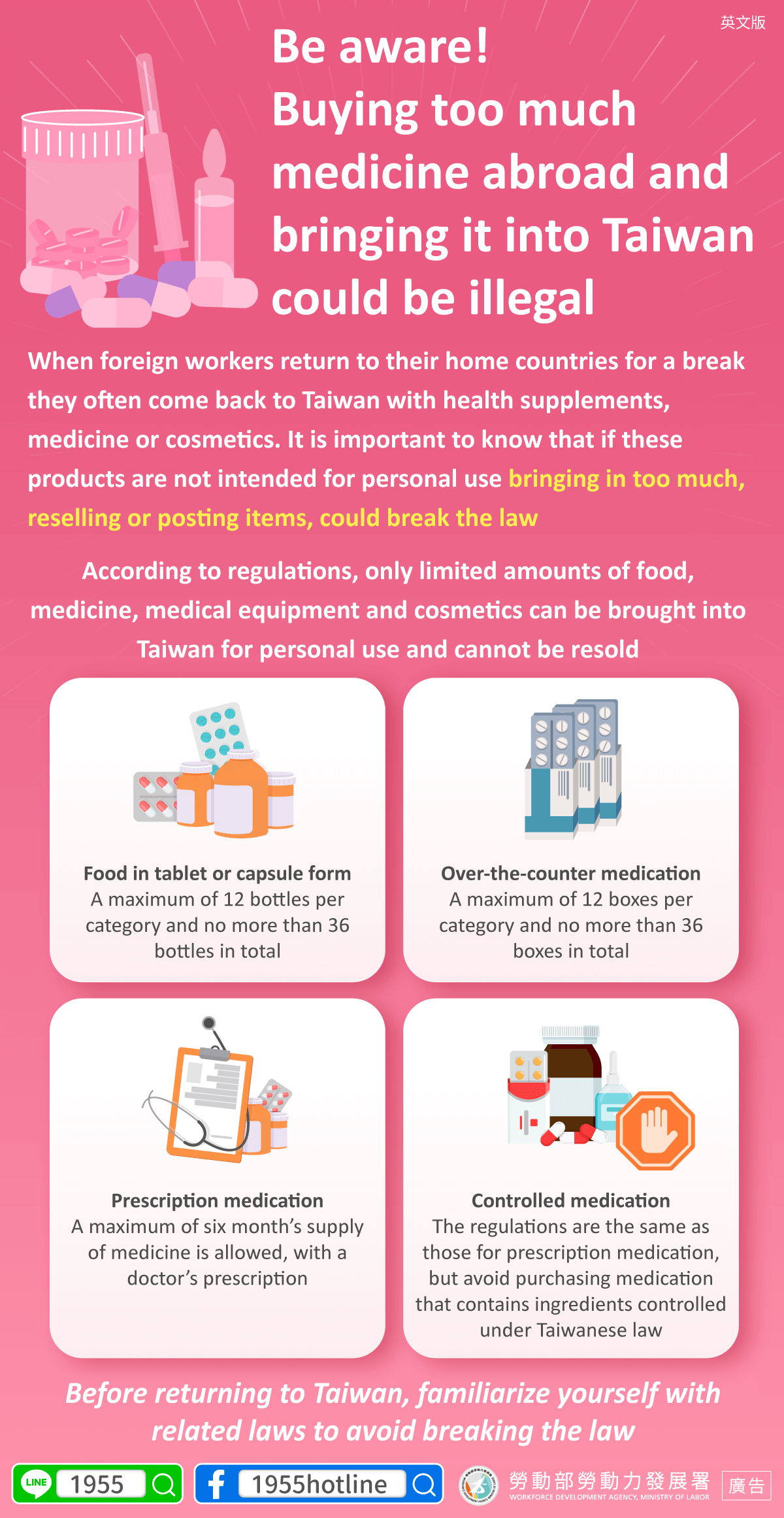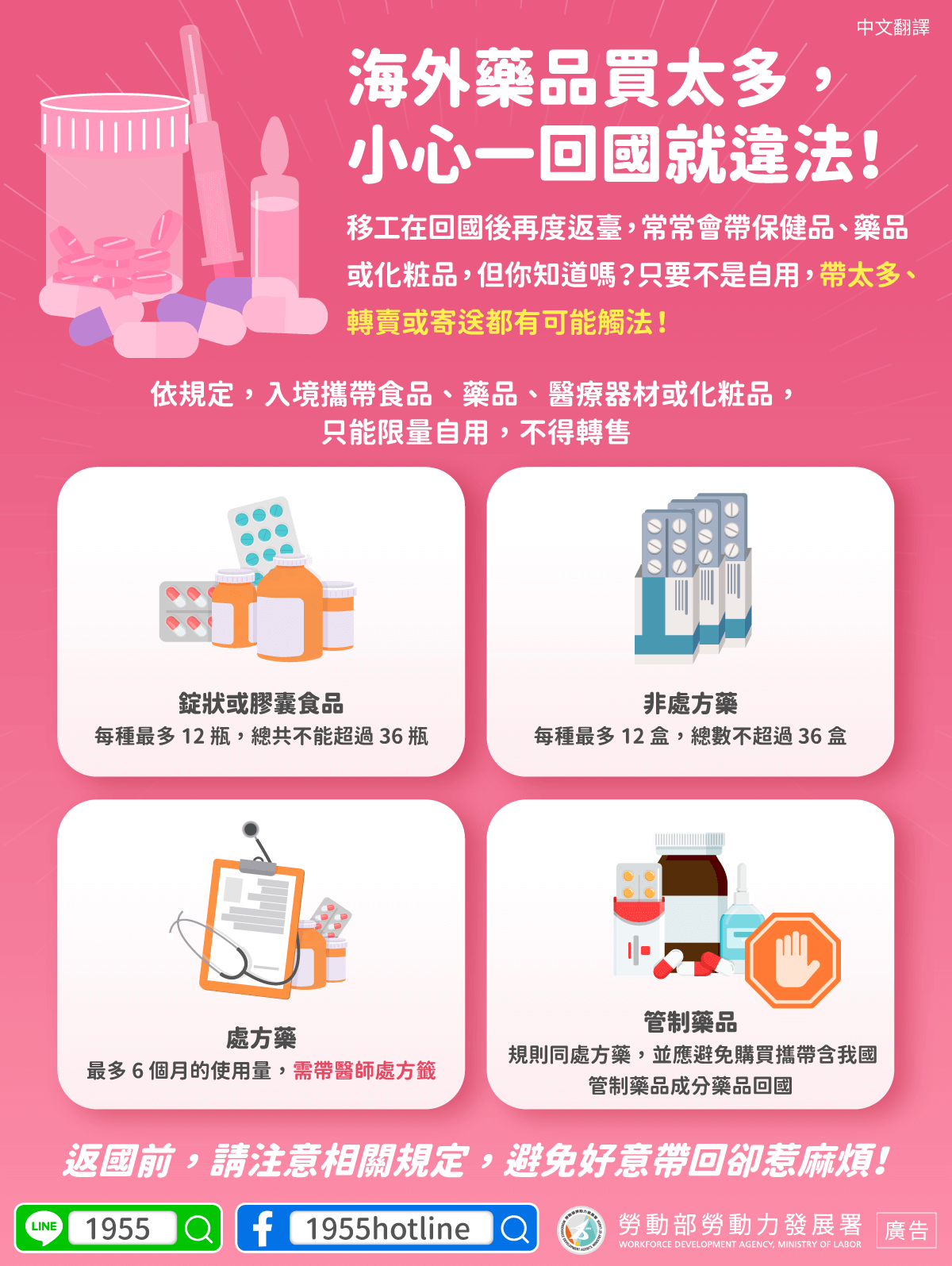 移工在回國後再度返臺,常常會帶保健品、藥品或化粧品,但你知道嗎?只要不是自用,帶太多、轉賣或寄送都有可能觸法!
