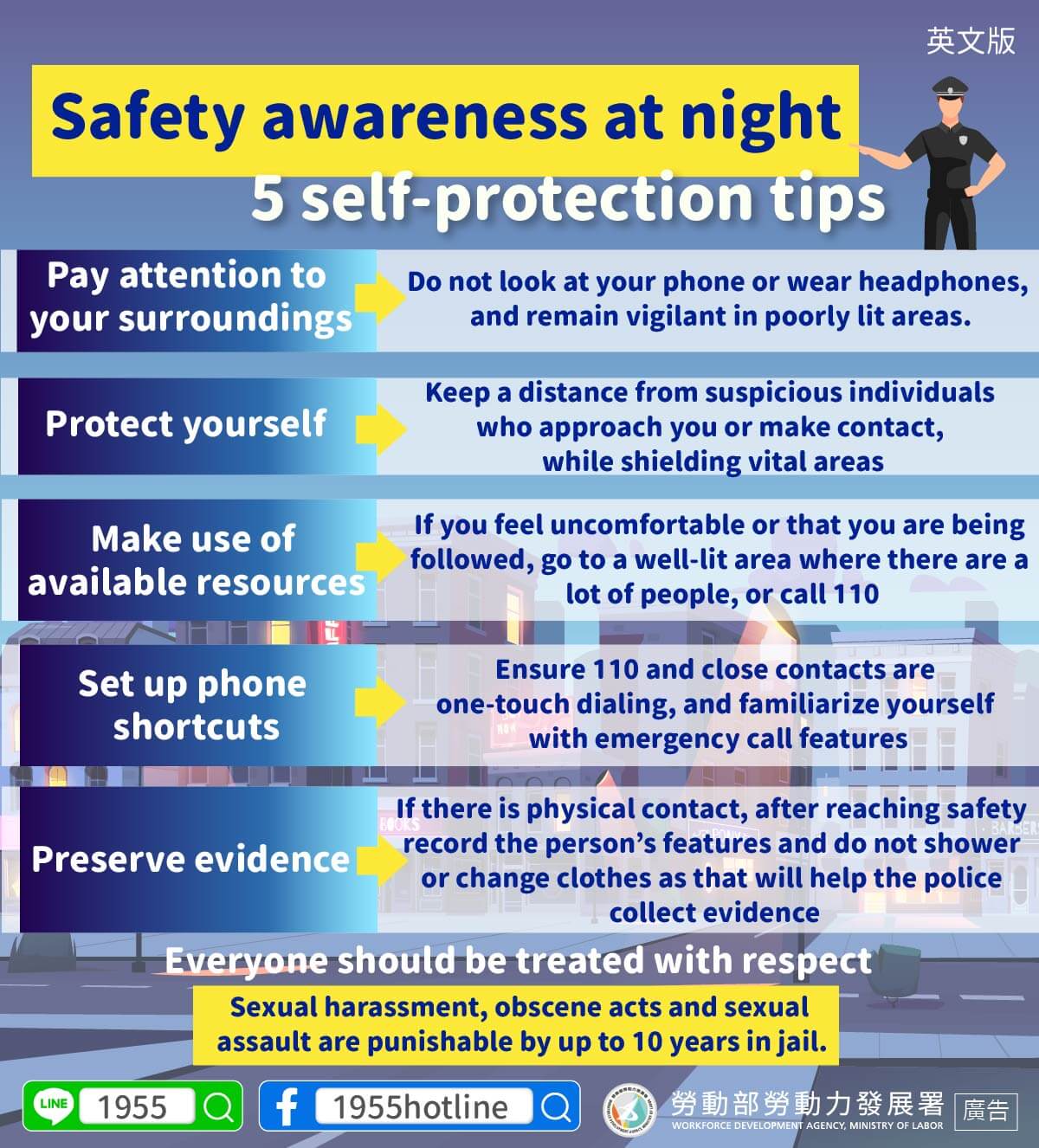 3. 善用求助資源 – 感到不舒服或被跟隨時,立即前往明亮人多處也可直接撥打110