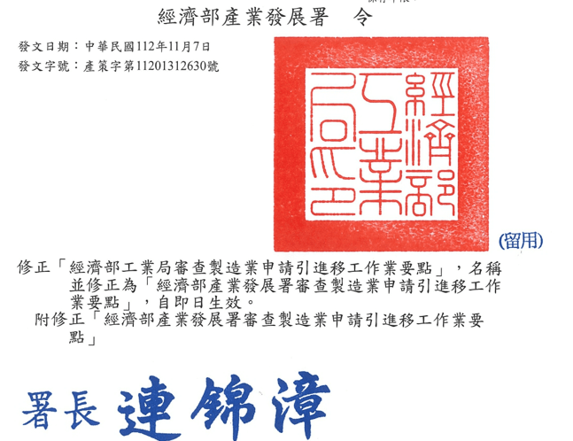 經濟部產業發展署於114年1月7日公告特定工廠登記業者申請引進移工作業相關資訊
